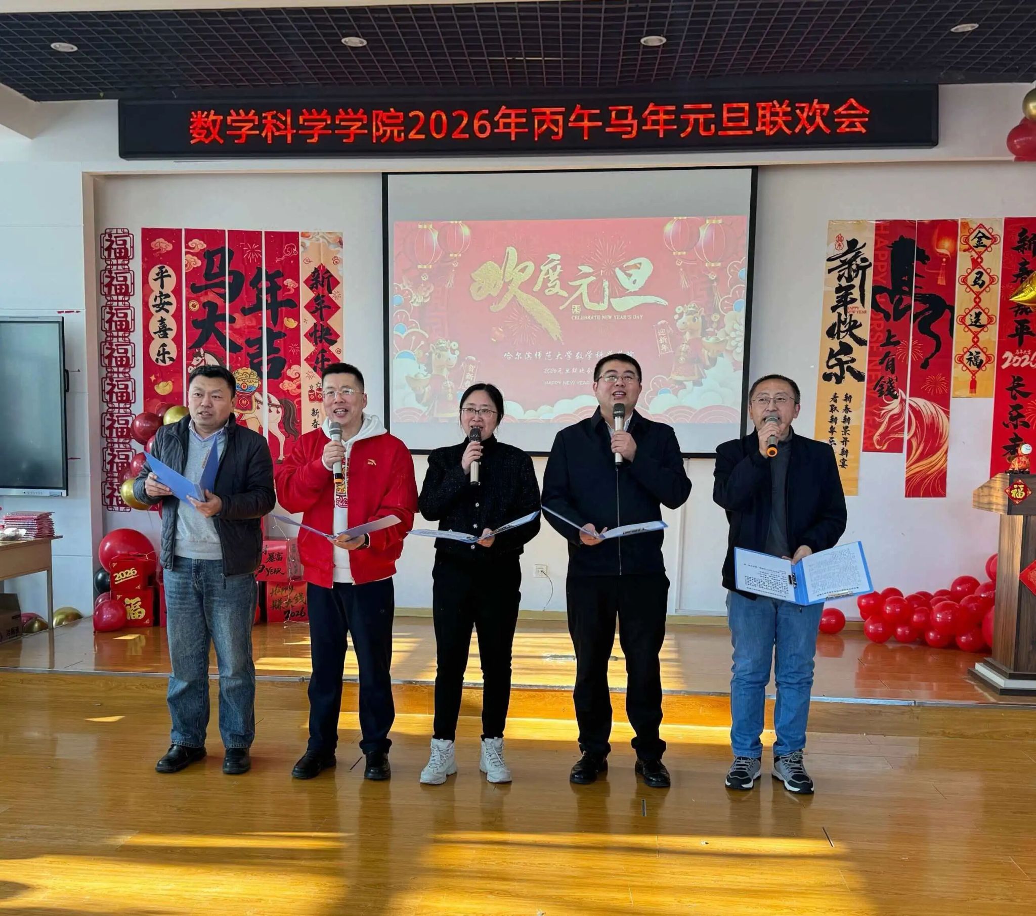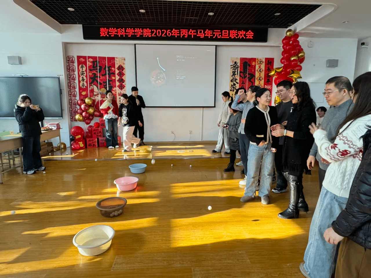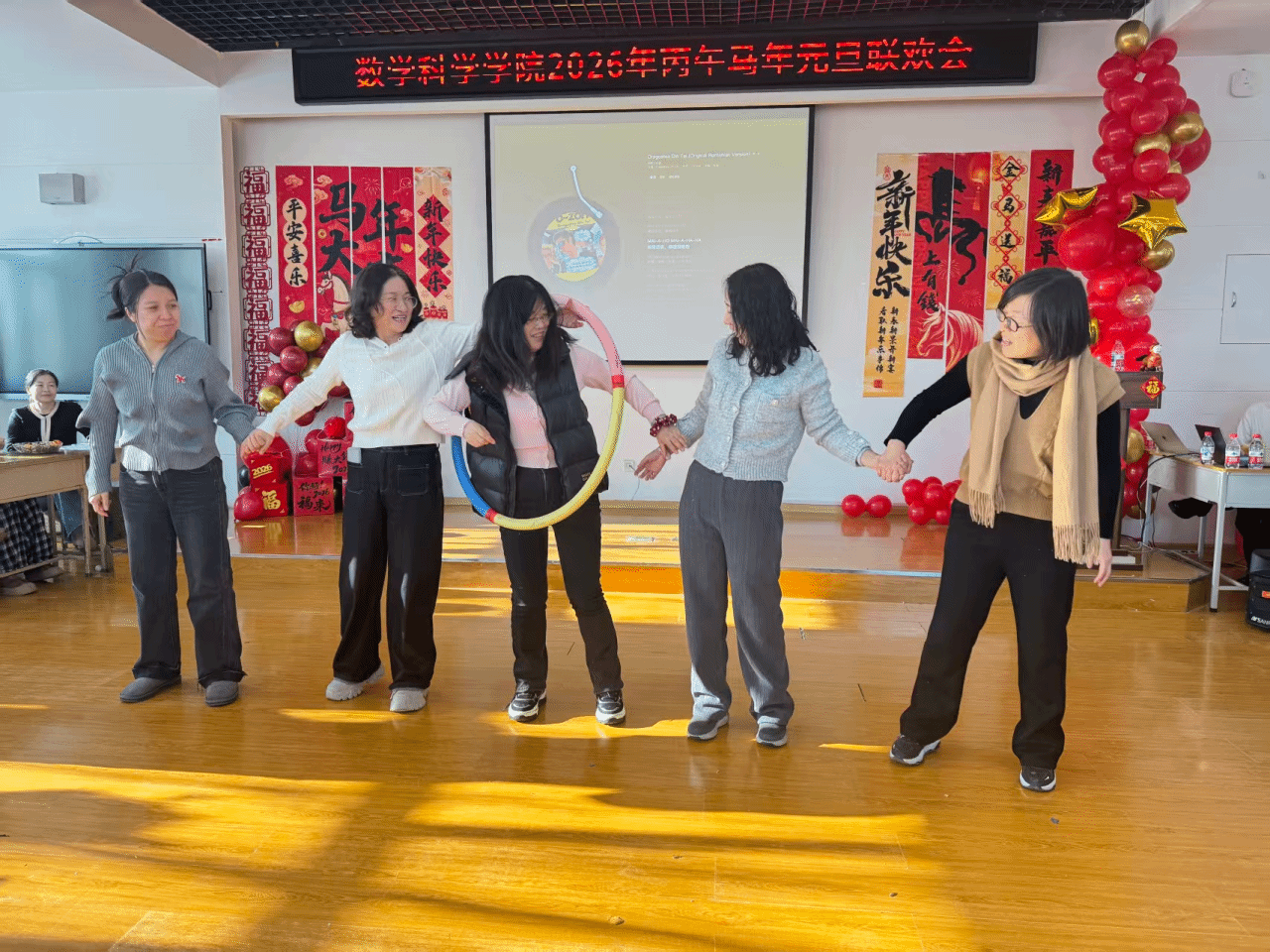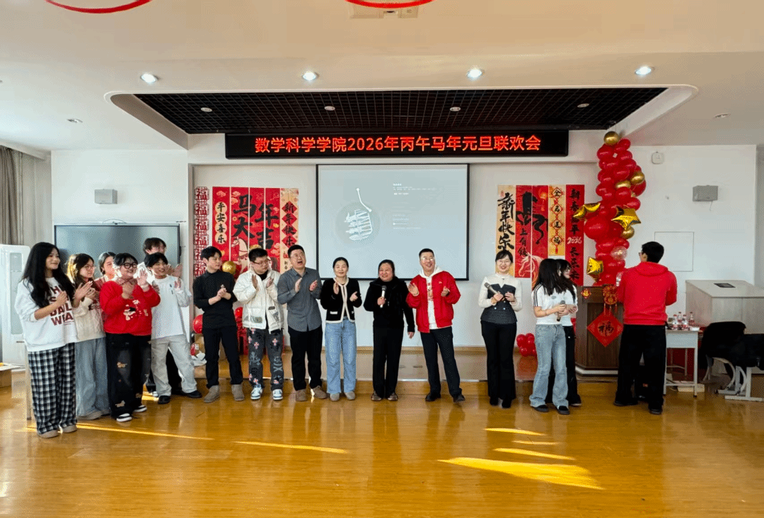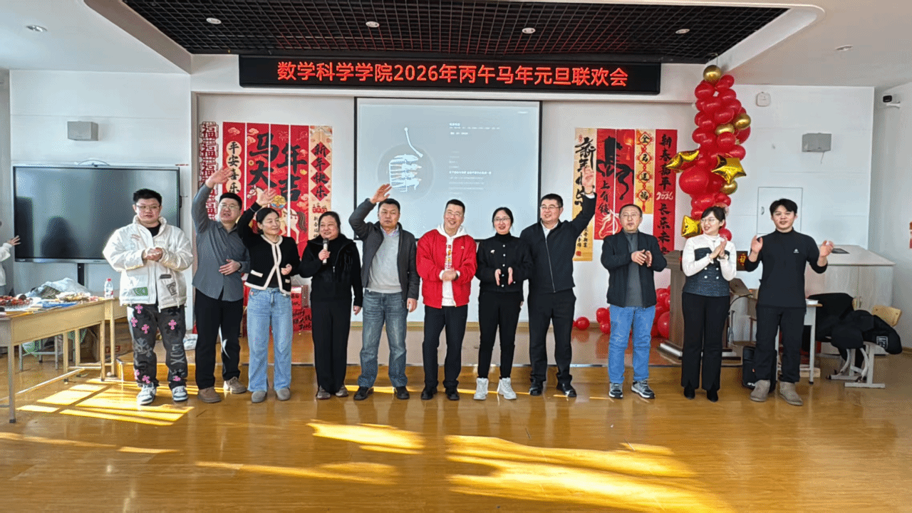 欢聚一堂辞旧岁,凝心聚力启新程。12月27日上午,数学科学学院2026年新年联欢会于理工一号楼337会议室温情启幕。学院领导班子与全体教职工欢聚一堂,以歌舞寄情、以游戏会友,在欢声笑语中定格团圆时刻,共赴一场洋溢着温馨与美好的新年之约。