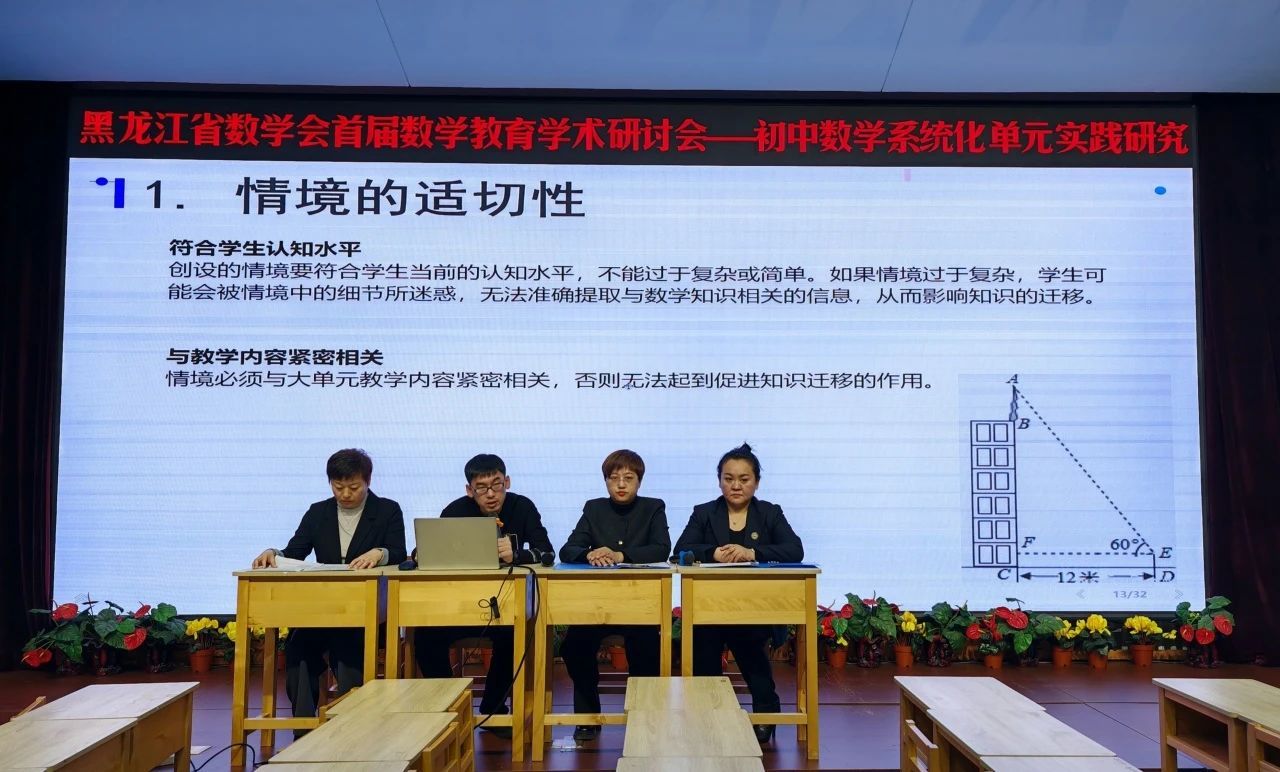 研讨活动的最后环节,哈尔滨市博雅中学赵守明、哈尔滨市第四十九中学郑敏、牡丹江市实验中学佟丽娜和牡丹江市第十六中学秦舒四位老师围绕“大单元教学”这一前沿教学理念展开深入讨论。
